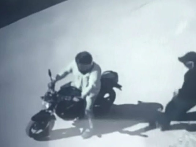 Una cámara de seguridad captó a dos delincuentes esperando en motocicletas la salida de sus cómplices, que salen raudamente con el botín en su poder. Tras visualizar estas imágenes, la policía montó un operativo y logró detener a uno de los presuntos responsables.