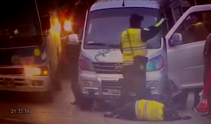 En Ate, el inspector Eduardo Zamora quedó en estado crítico durante varios minutos tras ser embestido por un conductor de una minivan, cuyos únicos argumentos fueron “discúlpame pe mano”, sin reparar en el daño. Se supo que su vehículo cuenta con cuatro mil soles de multa y fue enviado al depósito de la comisaría del distrito.