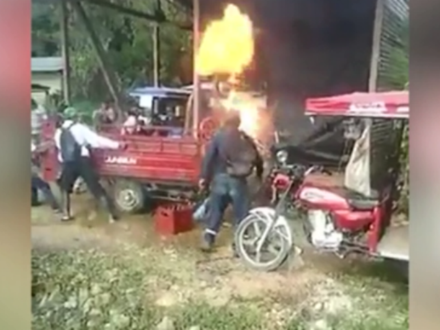 Momentos de pánico. En Tingo María, una motocarga explotó tras incendiarse, y luego de que un grupo de vecinos intentara apagar las llamas que consumían la unidad. El violento siniestro dejó a dos personas heridas.