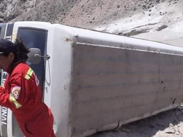Un total de 21 estudiantes de primaria que salvaron de morir, luego que el bus que los llevaba de paseo se volcará por una quebrada en la carretera Matarani-Mollendo en la ciudad de Arequipa.