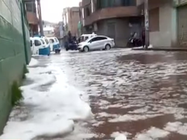 Fuertes lluvias y granizo inundaron y cubrieron de blanco las calles de Juliaca