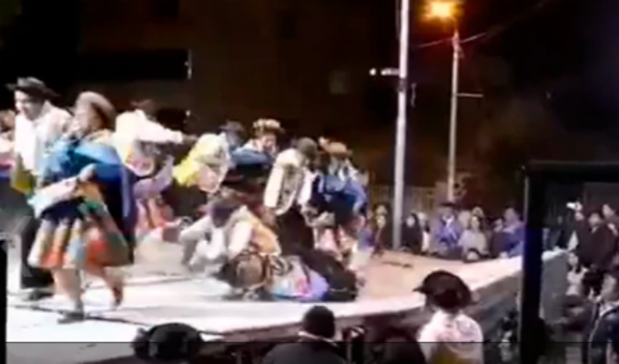 Bailarines peruanos destruyeron el escenario en el que ‘zapateaban’ un pegajoso huaylarsh.