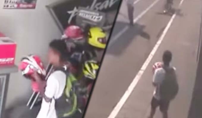 Trujillo: extranjero roba casco de motocicleta al interior de una tienda