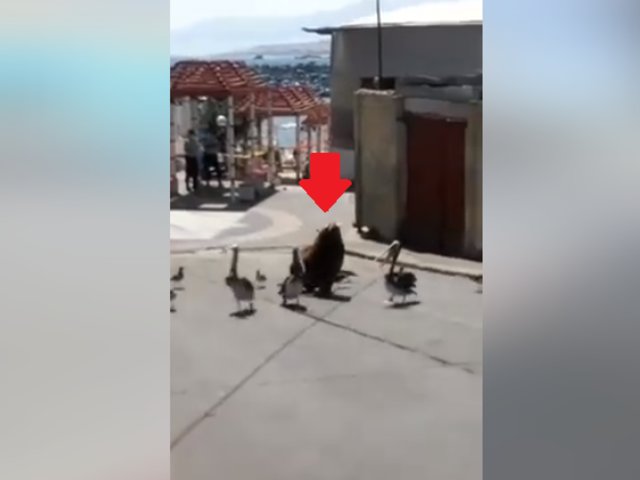 En nuestro país también se produjo este fenómeno. En Moquegua, un poblador capto como un lobo marino acompañado de pelícanos y gaviotas recorres las calles aparentemente para buscar comida.