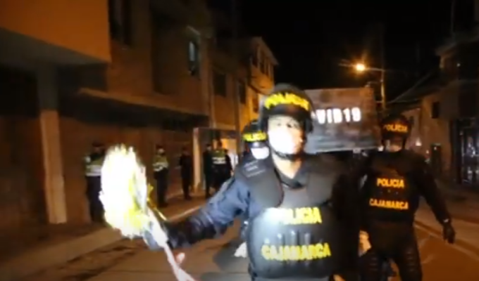 Cajamarca: agentes de la PNP cargaron ataúd que representaba al COVID-19