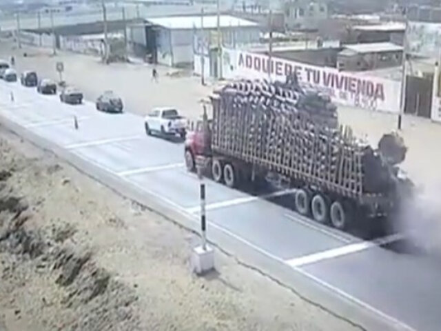En las imágenes se observa el preciso momento cuando el conductor pierde el control del vehículo pesado, esto debido a una aparente falla en los frenos.