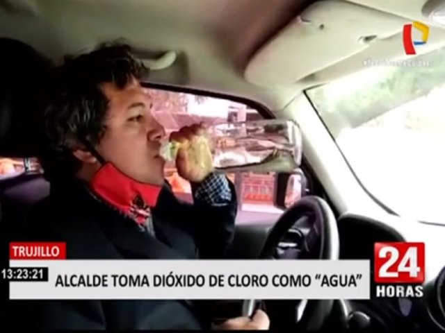 Trujillo: Alcalde de Moche toma dióxido de cloro como agua de tiempo