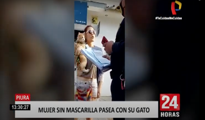 Pese al alto número de contagios de Covid-19, una mujer salió a pasear con su gato sin llevar puesta su mascarilla infringiendo las normas de bioseguridad. El hecho ocurrió en el distrito de Castilla de la región Piura.