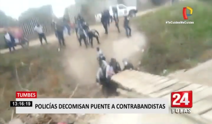Agentes de la Policía Nacional del Perú (PNP) decomisaron un puente rústico de madera en el departamento de Tumbes, específicamente en el sector conocido como La Sal, límite con Ecuador.