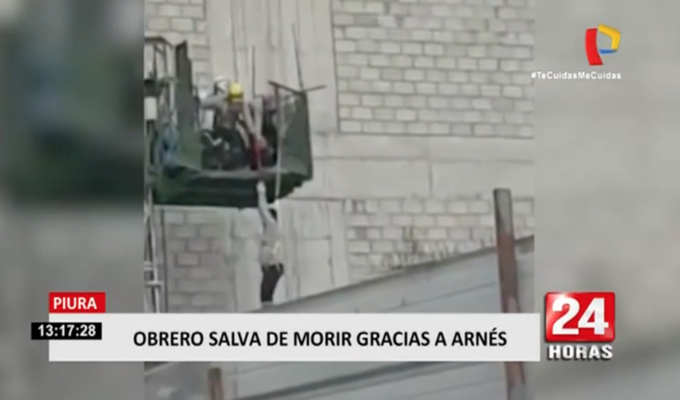 Un obrero de construcción civil se salvó de morir cuando realizaba trabajos de construcción en un edificio gracias al arnés de seguridad que llevaba puesto. El hecho ocurrió en la zona industrial, frente a la urbanización Ignacio Merino, en Piura.