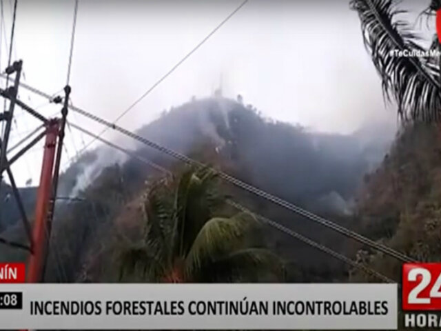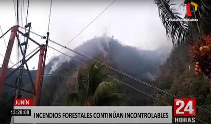 Los incendios forestales en la Selva Central en la provincia de Chanchamayo continúan y están afectando el hábitat de animales y consumiendo bosques, pero ahora amenazan las antenas de telefonía instaladas en el cerro Vista Alegre. Según las autoridades, el fuego lleva ocho horas y aún no es controlado, pues el acceso para los bomberos es difícil pues no hay una fuente de agua cercana.