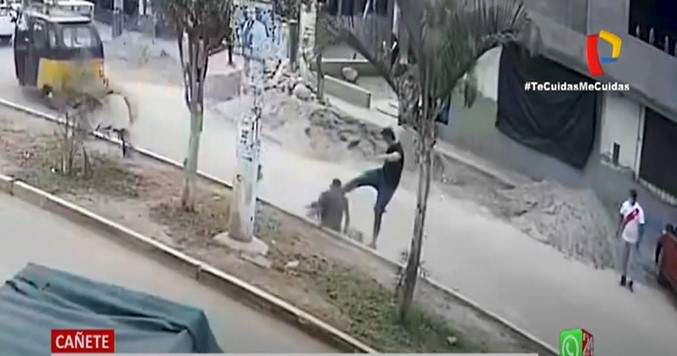 Salvaje. Un ciudadano venezolano hizo caer a un mototaxista de su vehículo y luego le propinó una patada en el rostro, dejándolo inconsciente en la pista. El hecho ocurrió en la provincia de Cañete y quedó registrado por las cámaras de seguridad.