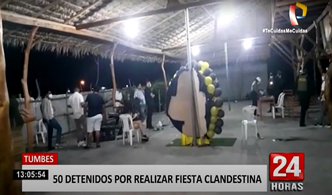 Siguen las reuniones sociales y clandestinas en diferentes puntos del país. En Tumbes, cerca de 50 personas fueron intervenidas en una fiesta que se celebraba en una casa de campo ubicada en la calle Los Girasoles de la provincia de Zarumilla. Los asistentes fueron sorprendidos cuando los agentes realizaban el operativo ‘Fortaleza 2020’.