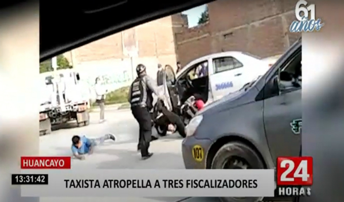 Tres inspectores de la municipalidad de Huancayo fueron atropellados por el conductor de un vehículo que fue detenido por infringir las normas. El sujeto había dejado estacionado su taxi en zona prohibida, por lo que su vehículo iba a ser trasladado al depósito municipal.