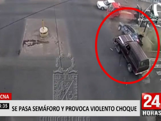 En Tacna, la cámara de vigilancia de la municipalidad distrital captó el choque entre una camioneta y un taxi.