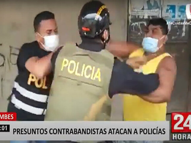 Durante la intervención de dos sujetos que trasladaban pipas y bolsas de combustible que habían ingresado de Ecuador, se inició una persecución y enfrentamiento con la policía. Familiares y vecinos de los sospechosos atacaron con piedras y palos a los policías para liberarlos, pero finalmente fueron detenidos y el producto ilegal fue trasladado a la dependencia policial.