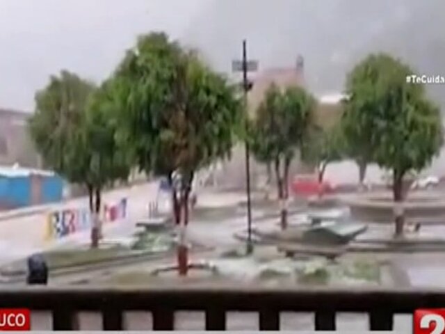 Huánuco: Torrencial lluvia y granizada inundan calles y plazas