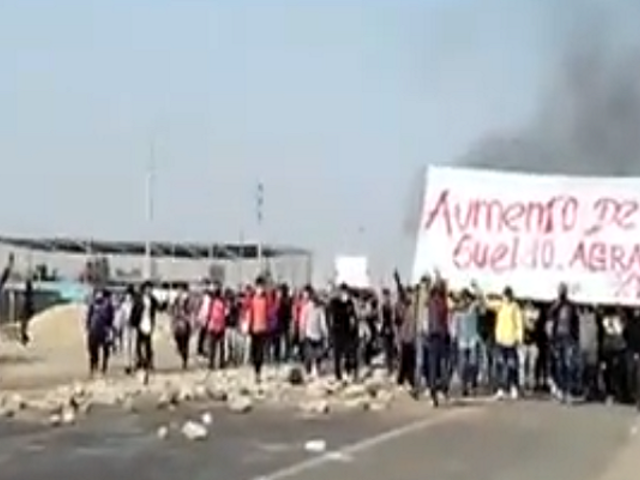 Un numeroso grupo de trabajadores del campo de las diferentes agroexportadoras bloquearon la Panamericana Sur en varios tramos. Encendieron neumáticos, colocaron piedras y troncos en la carretera como medida de protesta contra las empresas agroexportadoras.