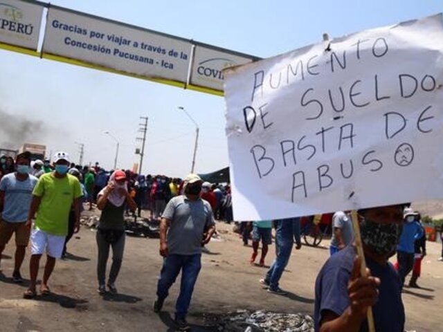 Luego que el diálogo entre el Gobierno y trabajadores agrarios se interrumpiera, trabajadores de empresas agroexportadoras volvieron a bloquear varios tramos de la Panamericana Norte en Ica para exigir mejores condiciones laborales e incremento de salarios.