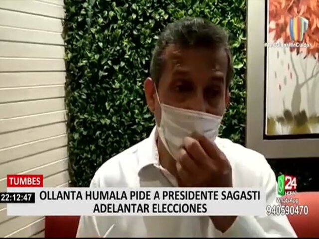 Desde Tumbes, el expresidente de la República y candidato por el Partido Nacionalista, Ollanta Humala Tasso, recomendó al presidente Francisco Sagasti, adelantar las elecciones para marzo del próximo año, tras enfrentamientos entre el Congreso y el Ejecutivo.