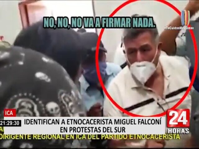 Se trata de Luis Miguel Falconi, un dirigente regional de Ica del Partido Etnocacerista, quien pidió a los demás que no firmen ningún acta de acuerdo.
