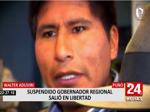 El suspendido gobernador regional de Puno, Walter Aduviri Calisaya, será puesto en libertad, luego de que la Sala Penal Permanente de la Corte Suprema, declarara fundada en parte el recurso de casación presentado por su defensa legal.