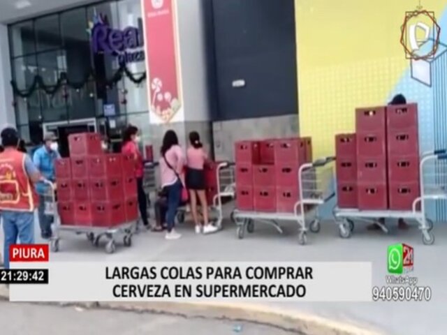 Pese a que están prohibidas las reuniones por fin de año, decenas de personas formaron grandes colas para comprar cerveza en este supermercado de Sullana.