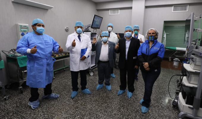 La titular de EsSalud, Fiorella Molinelli junto al ministro de Justicia, Eduardo Vega, supervisaron la campaña de prevención y toma de pruebas moleculares realizada en la ciudad de Huancayo, en Junín.