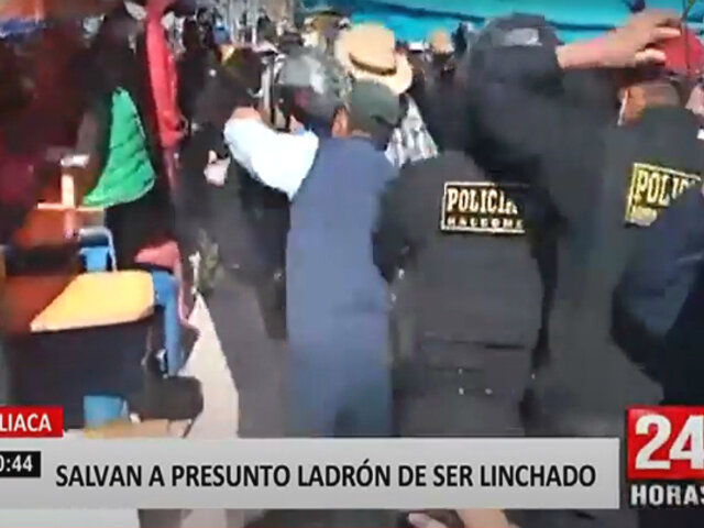 Un sujeto que estaba siendo golpeado, empujado e insultado por comerciantes y transeúntes fue rescatado por la policía, pues era acusado de haber robado el celular de una persona. Los comerciantes rodearon al presunto ladrón para castigarlo y obligarlo a que devuelva el teléfono robado, pero al negarse fue agredido por la turba.