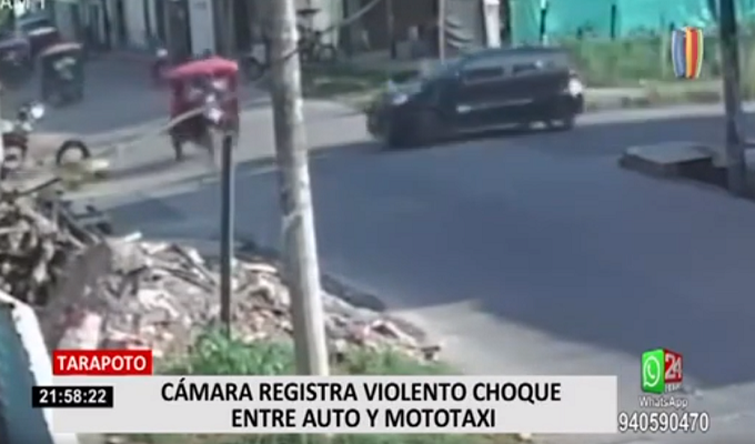 Tarapoto: cámara registra violento choque auto y mototaxi