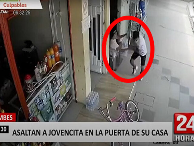 En Tumbes, una cámara de seguridad captó a dos delincuentes arrebatando el celular a una menor de edad en la puerta de su casa ubicada en la provincia de Zarumilla.