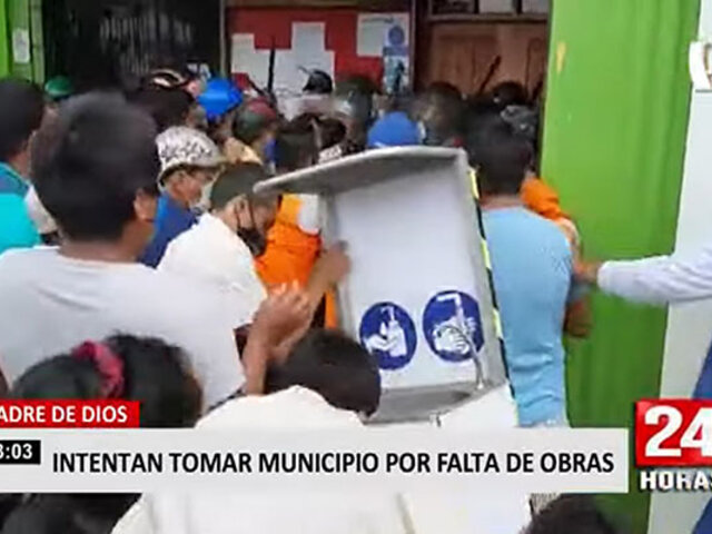 Madre de Dios: turba intenta ingresar a municipalidad exigiendo más obras