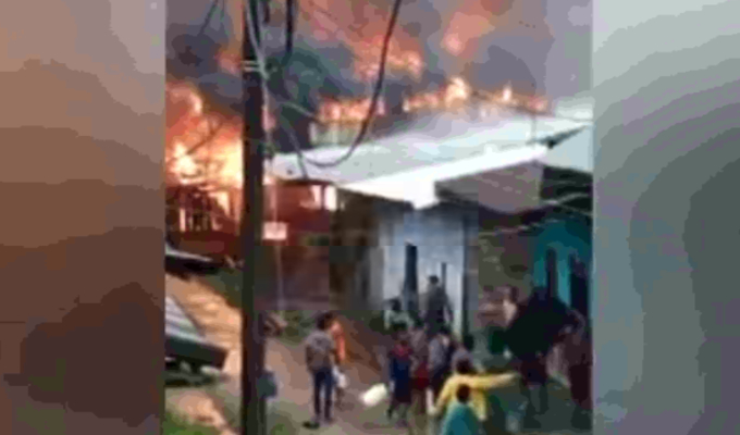 Pese a la lluvia, las llamas se propagaron rápidamente debido al material inflamable con la que estaban hechas las viviendas.