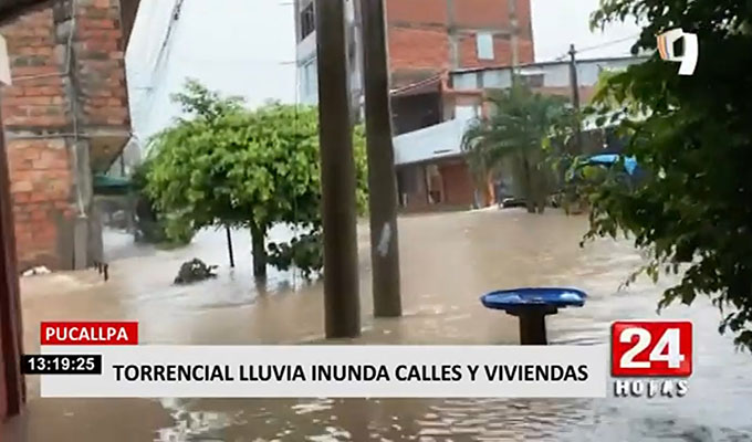En Pucallpa, las calles y viviendas de la ciudad terminaron inundadas luego de una fuerte lluvia que se inició desde las 5 de la mañana y no paró hasta cuatro horas después.