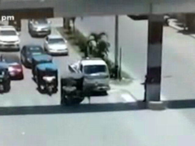 La víctima identificada como Percy Gálvez se encontraba a bordo de su unidad esperando el cambio de luz del semáforo, cuando el pesado vehículo hace su aparición y lo termina impactando por la parte trasera.