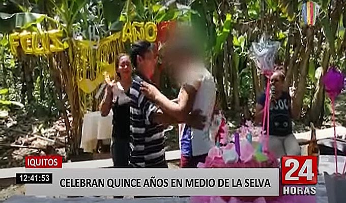 En medio de la selva de Iquitos, una familia decidió celebrar el quinceañero de una de sus integrantes en medio de la selva, para evitar que la Policía llegue hasta la zona y los intervenga.