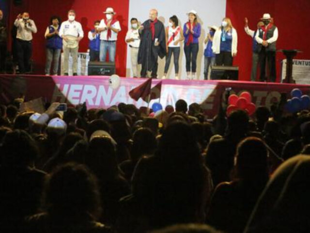 Efectivos policiales llegaron hasta el lugar para conversar con los promotores del mitin; sin embargo, cuando se creía que el evento sería cancelado por la concentración de personas, minutos después apareció el aspirante al sillón presidencial y empezó su discurso.