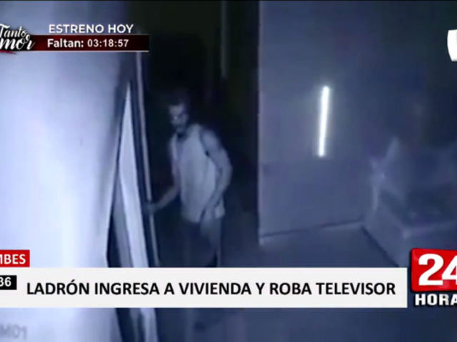 Tumbes: cámaras captan a ladrón robando televisor en una casa
