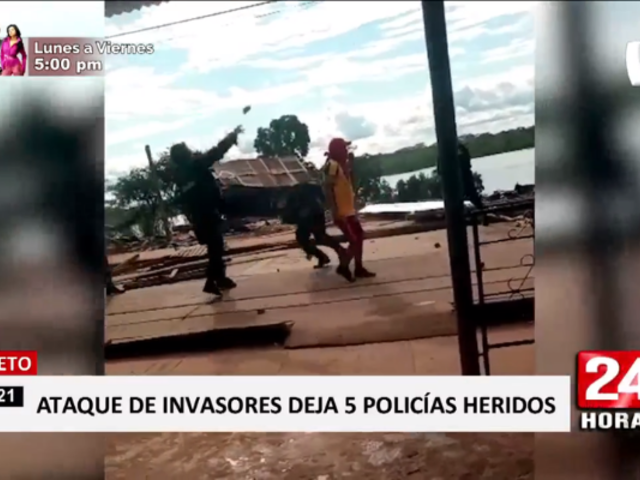 Iquitos: policías e invasores se enfrentan en batalla campal
