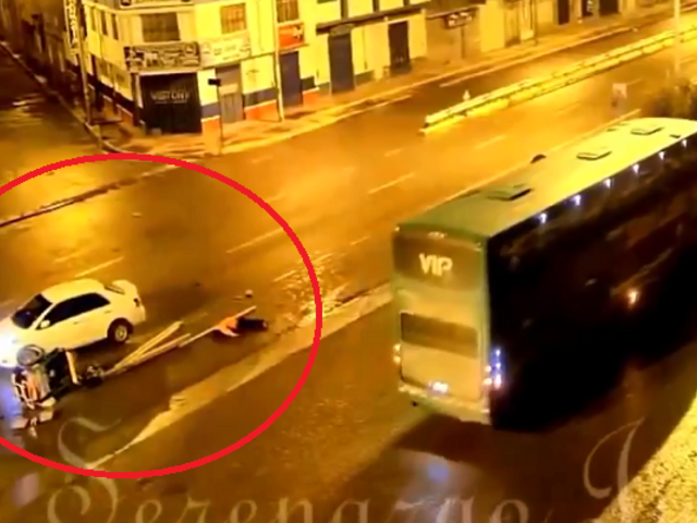 Sin embargo, cuando estaba cruzando la vía que iba en sentido contrario, aparece un auto blanco a toda velocidad y termina atropellándolo.