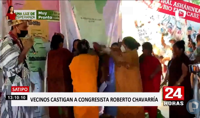 En Satipo, un grupo de pobladores de la cuenca del río Ene, en el distrito de Río Tambo, castigo al congresista Roberto Chavarría Vilcatoma.