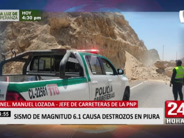 El jefe de Carreteras de la Policía Nacional del Perú (PNP), coronel Manuel Lozada, informó que producto del fuerte sismo de 6.1 de magnitud, en Piura, se registraron desprendimientos de rocas en carreteras de la región, pero sin dejar heridos.