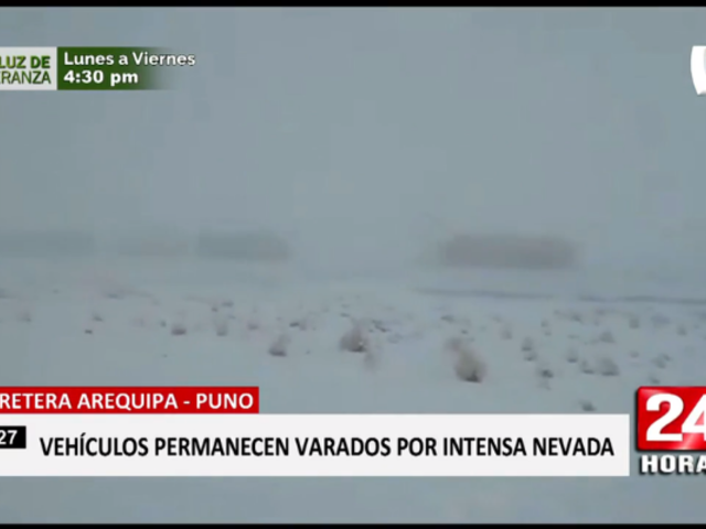 Decenas de vehículos quedaron atrapados en el sector de Imata, en la carretera Arequipa - Puno, luego de una intensa nevada que comenzó en horas de la noche.