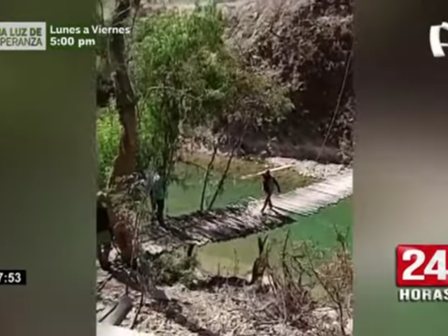 Los vecinos del caserío de Cascay, ubicado en la provincia de Ambo, región Huánuco, diariamente arriesgan sus vidas al cruzar un precario puente.