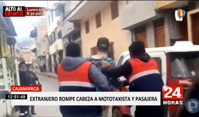 En Cajamarca, un extranjero fue intervenido por las rondas urbanas, acusado de haberle roto la cabeza a un joven motoxista y a su pasajera.