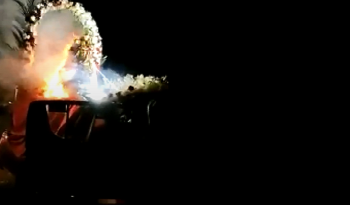 En Ica la imagen de la Virgen de Las Mercedes terminó su recorrido por el centro poblado San Antonio, ubicado en el distrito de Llipata, en la provincia Iqueña de Palpa, pero cuando se detuvo en el frontis de la iglesia, las chispas de unos fuegos artificiales alcanzaron su vestimenta y la efigie quedó envuelta en llamas.
