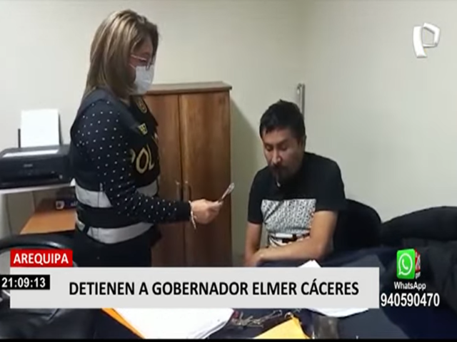 Los agentes de la policía nacional detuvieron, esta mañana, al gobernador de Arequipa Elmer Cáceres Llica por liderar, presuntamente, la organización criminal "Los Hijos del Cóndor". Durante su detención, el gobernador, culpó al presidente Pedro Castillo, a quien insultó momentos antes de ser ingresado a una patrulla.