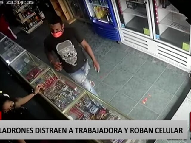 En Tumbes, las cámaras de seguridad de una licorería captaron cómo dos ladrones distrajeron a la vendedora del local para apoderarse de su celular.