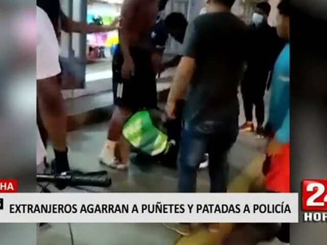 Chincha: Mototaxistas extranjeros agarran a puñetes y patadas a policía de tránsito