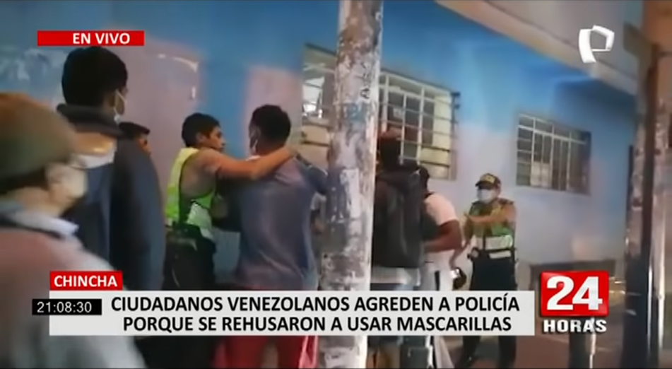 Un grupo de ciudadanos extranjeros agredieron a un policía, cuando hacía ronda de seguridad en una calle ubicada a dos cuadras de la comisaría y la Plaza de Armas de Chincha.